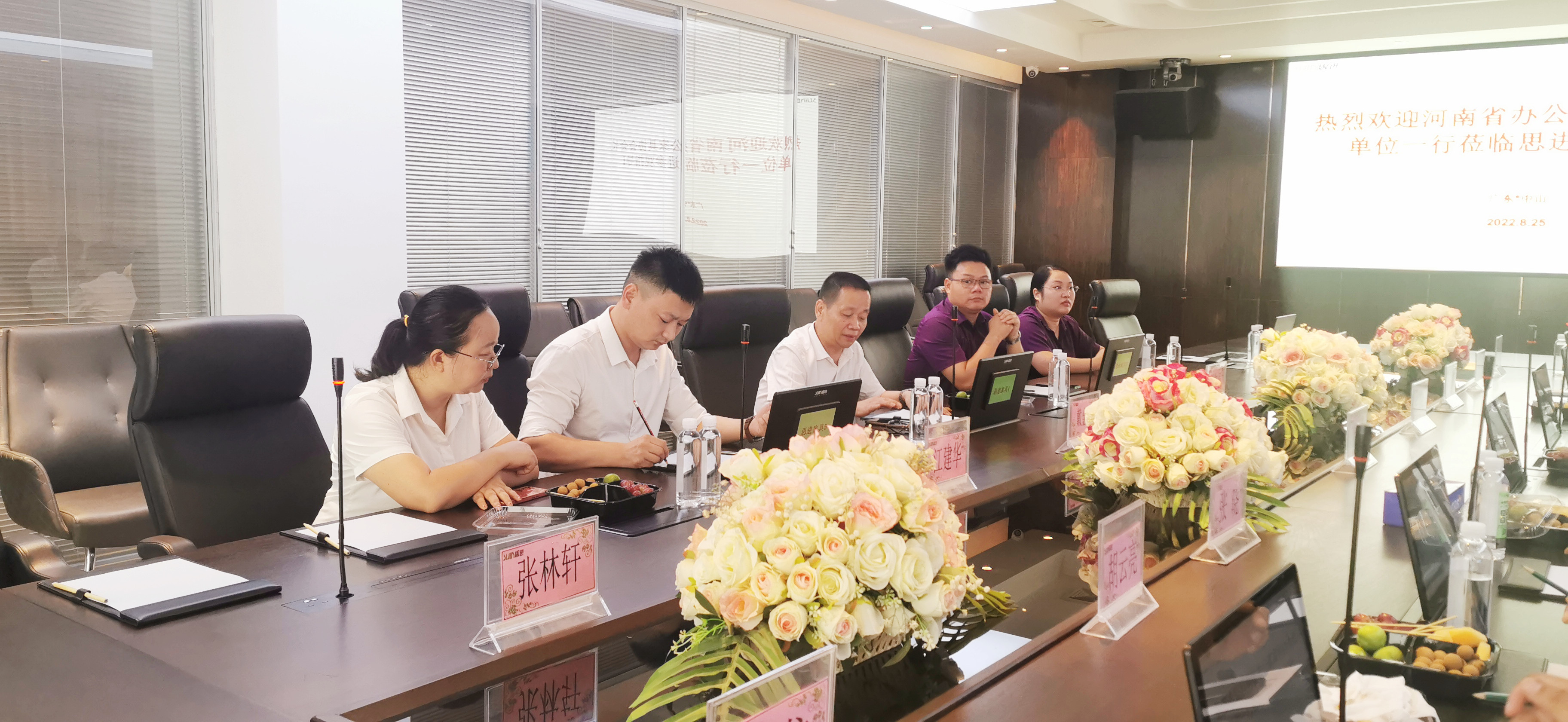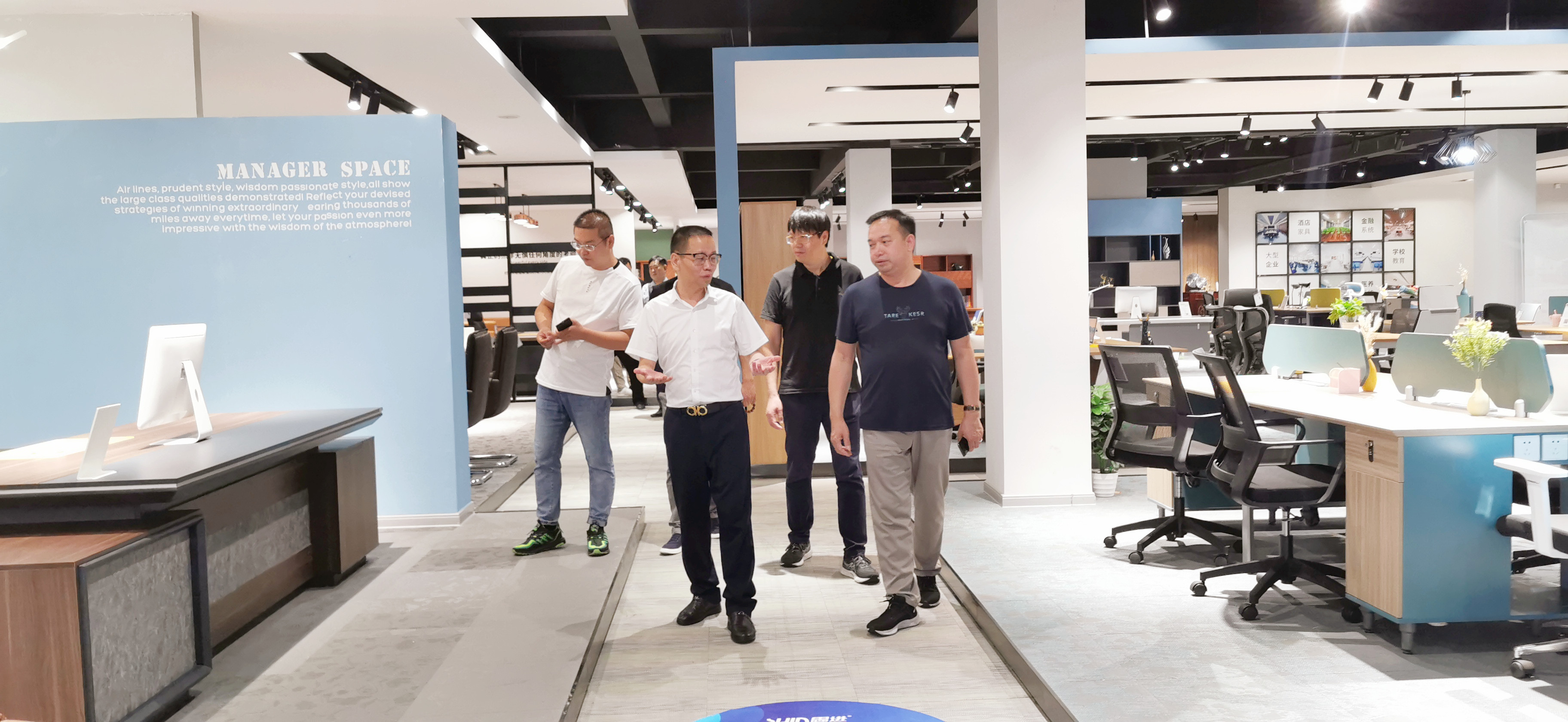 辦公家具協會會長張鋒帶隊的考察團一行到訪思進家具集團,考察團成員有會長張鋒(河南震美辦公空間設計總經理)、秘書長采彥峰(河南美斯頓家俱總經理)、監事長張曉(河南誠業家俱總經理)、常務副會長陳海亮(河南雅寶家俱總經理)、常務副會長胡云亮(洛陽科亞飛家具總經理)、常務副會長王金鋼(河南優美辦公總經理)、副會長嚴龍(河南點晴電子科技總經理)、副秘書長張小遠(鶴山市四方家具總經理)。思進家具集團總裁戴金榮出席接待,雙方進行交流洽談。