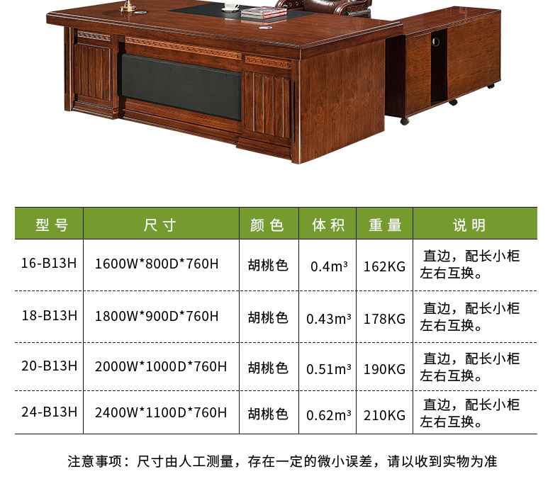 胡桃原木色實木辦公桌B2817M/B3217M/B3617M