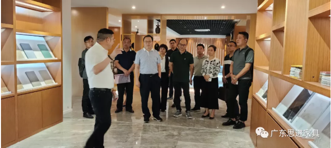廖董事長首先向民建各位領導介紹了思進家具業務及發展方向,隨后陪同冼聰穎副主委、陳月榮副主委一行參觀了思進