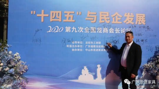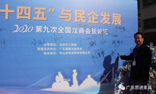 12月5日,第九次全國龍商會長論壇在廣東中山市思進家具舉辦。龍巖市政協副主席、工商聯主席鄭玉琳,市委統戰部副部長、工商聯黨組書記朱彪仁,市工商聯黨組成員、副主席廖連強,異地龍巖商會會長張永忠、廖金鳳、江洪喜等60多人出席論壇。此次論壇由廣東省龍巖商會輪值主辦,廣東省龍巖商會執行會長、思進家具董事長廖健程主持會議。