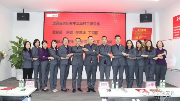 廖董事長作為思進家具戰略定位第一人,從為員工制定個人目標“三年買車、五年買房”到今天的“營銷人員成長晉升層級”,他始終不忘堅持思進核心價值觀:支持員工實現個人價值,員工助推企業持續發展,我們共同承擔社會責任,實現國富民強。最后廖董事長期望思進品牌涌現更多的戰斗力強、忠誠度高的優秀人才,與思進共同成長!